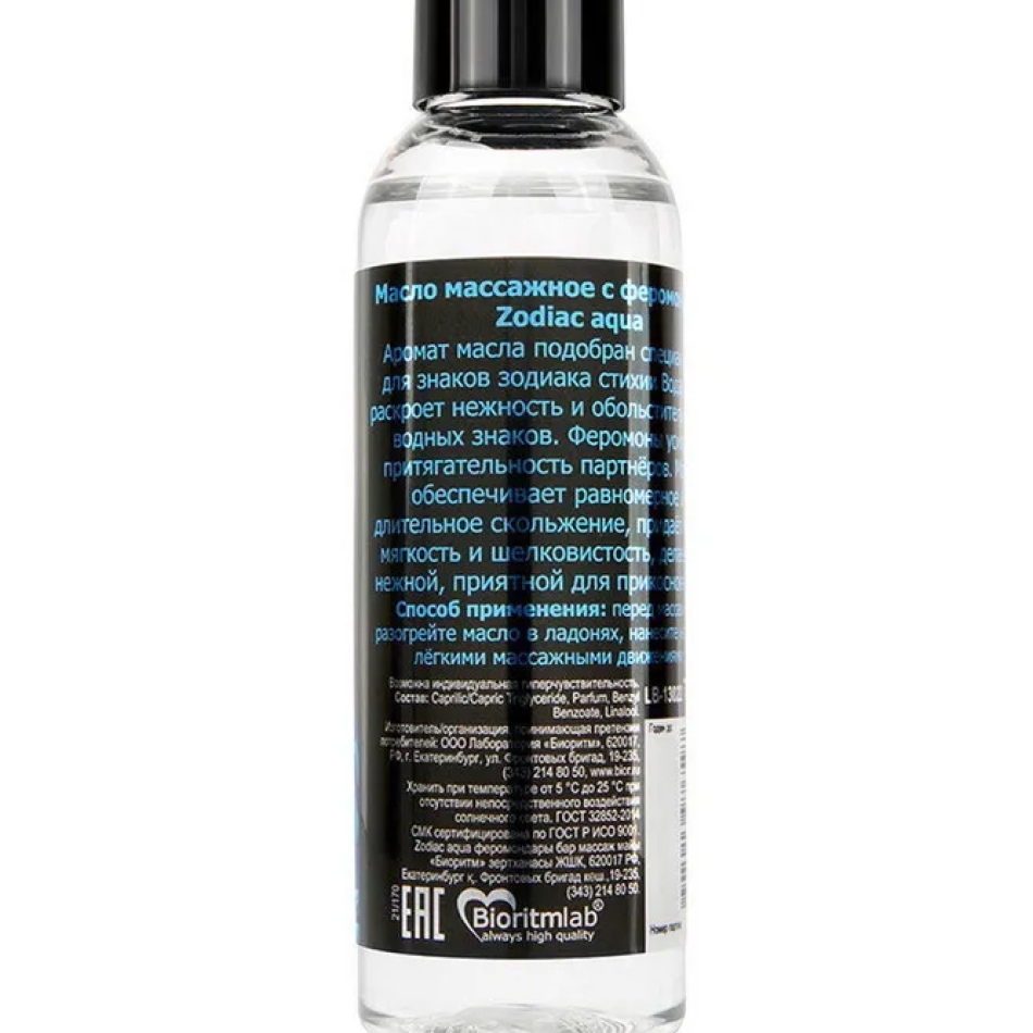 Массажное масло с феромонами ZODIAC AQUA, 75 мл