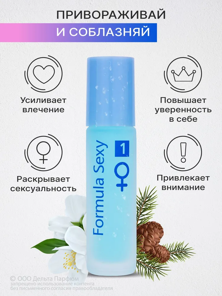 Почувствуйте уверенность и соблазнительность с женскими масляными духами с феромонами Formula Sexy №1. Яркая композиция из пряного перца, сочного яблока и утончённого жасмина подчёркивает женственность и притягивает внимание.