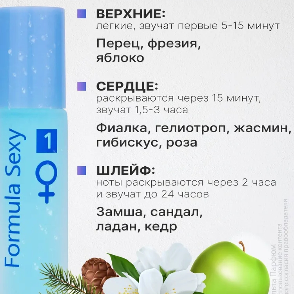 Духи масляные женские с феромонами Formula Sexy №1, 8 мл — перец, яблоко, жасмин. Притягательный аромат в Алматы