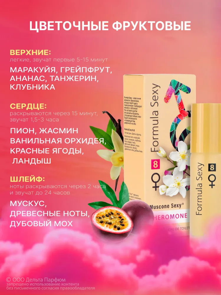 Духи масляные с феромонами Formula Sexy №8, 8 мл — фруктовая свежесть и женское очарование в Алматы