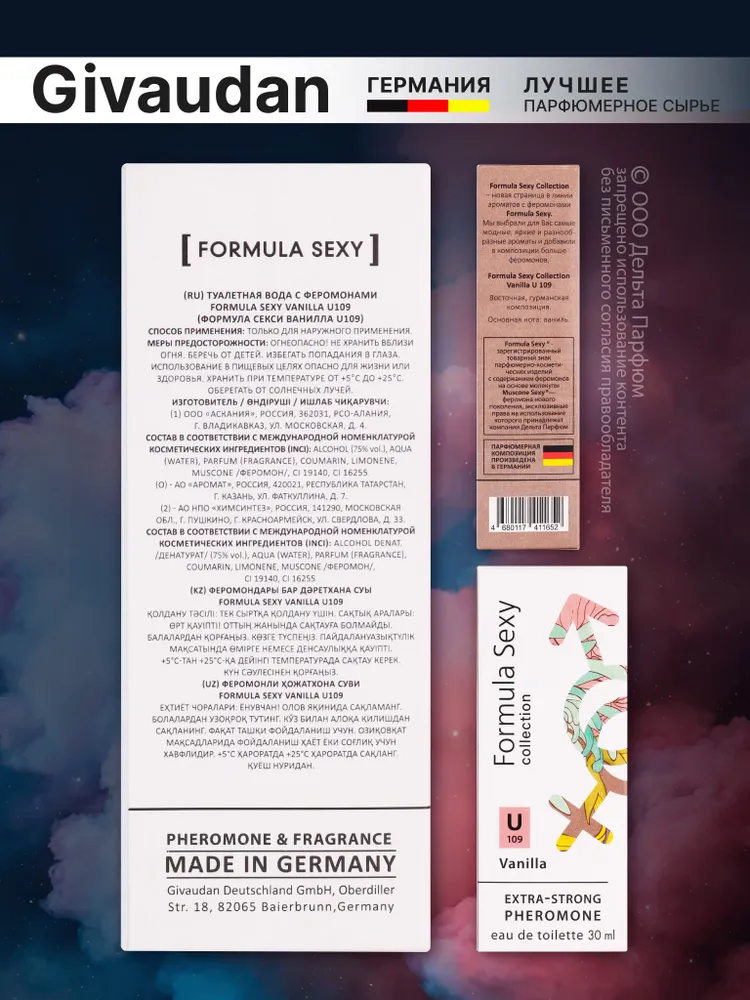 Туалетная вода унисекс с феромонами Formula Sexy Collection Girl U109, 8 мл — ванильное притяжение в Алматы