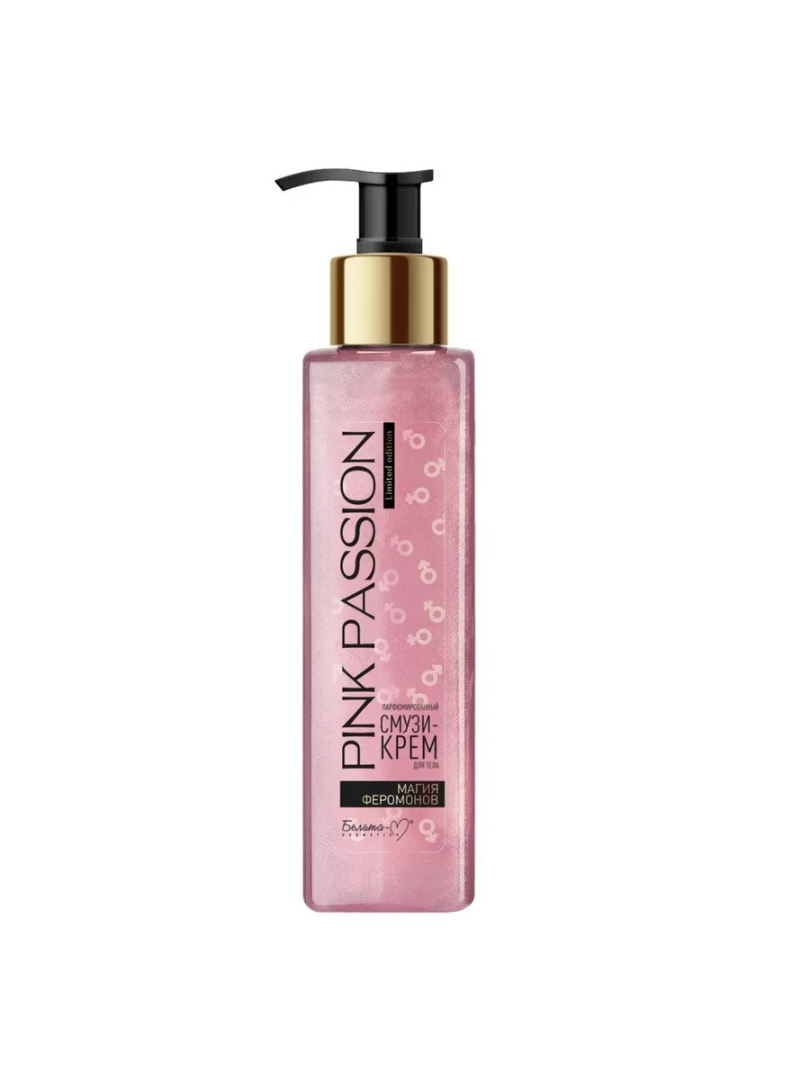 Pink Passion смузи для тела с феромонами 190 мл — это больше, чем просто уходовая косметика. Это настоящий эликсир женственности, который дарит коже гладкость, увлажнение и тонкий аромат с феромонами. Лёгкая текстура, яркий шлейф и притягательная энергия — всё, что нужно для уверенности в себе каждый день.