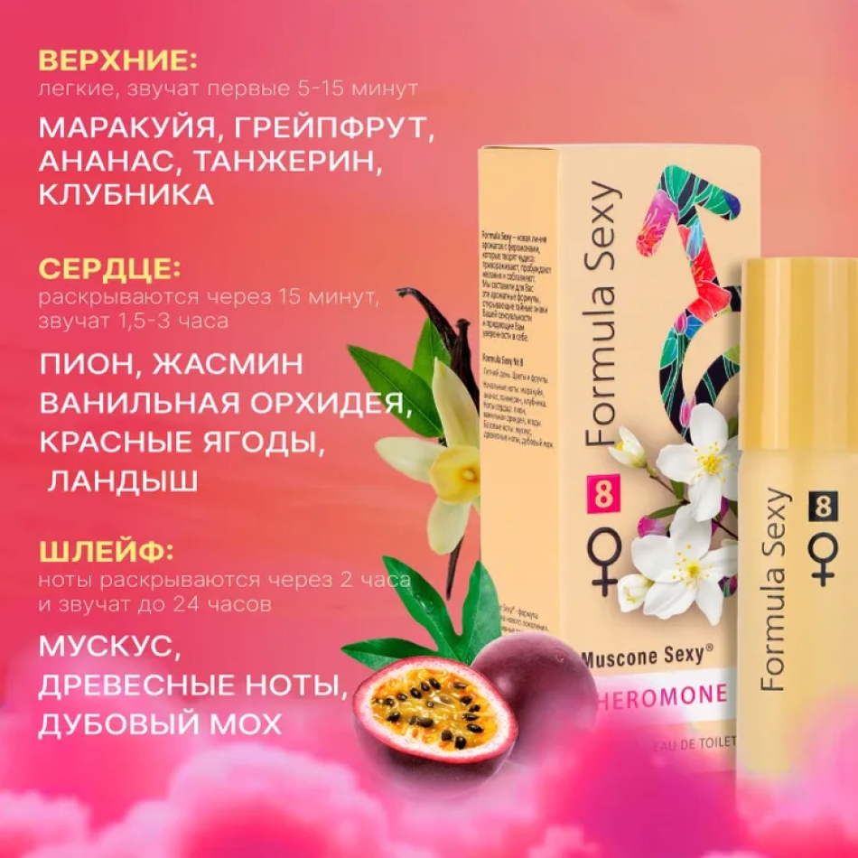 Духи масляные с феромонами Formula Sexy №8, 8 мл — фруктовая свежесть и женское очарование в Алматы