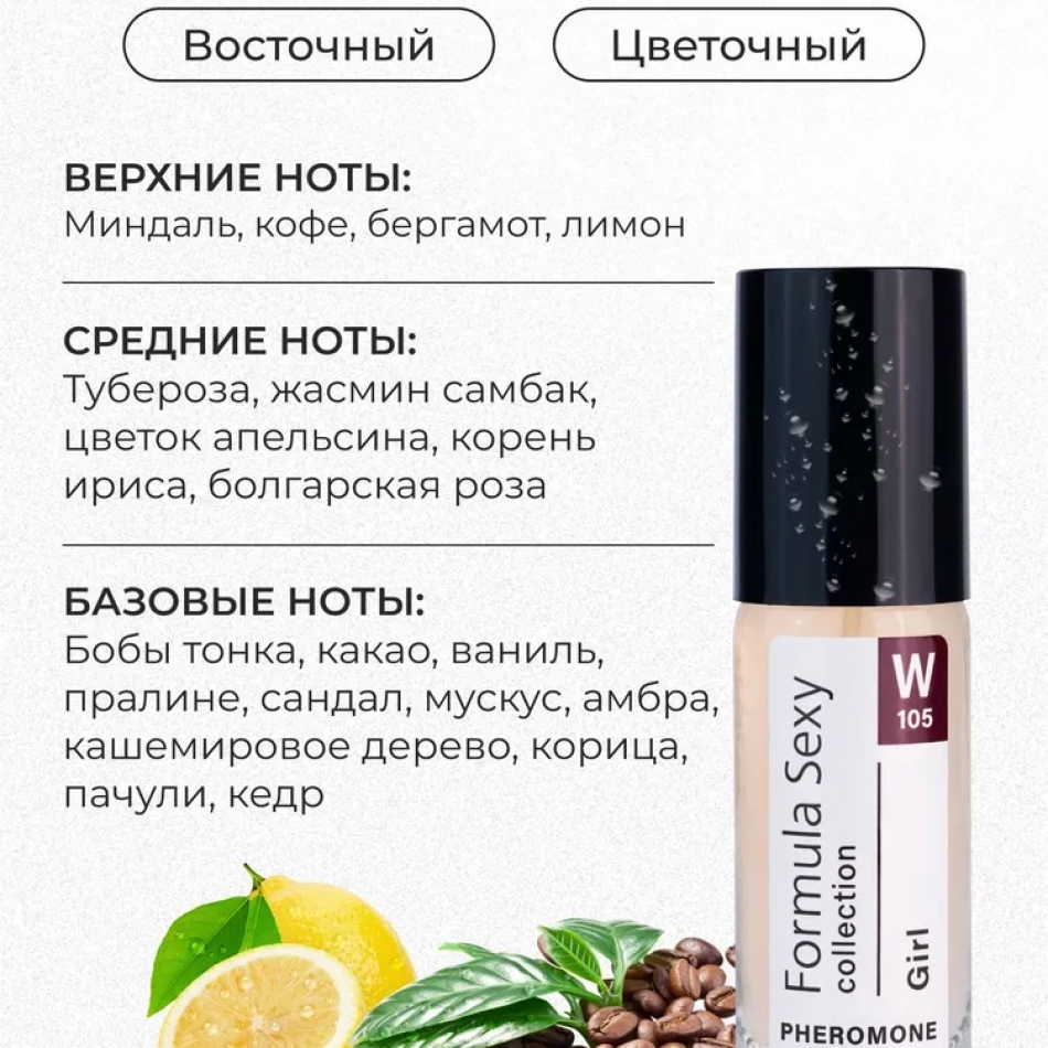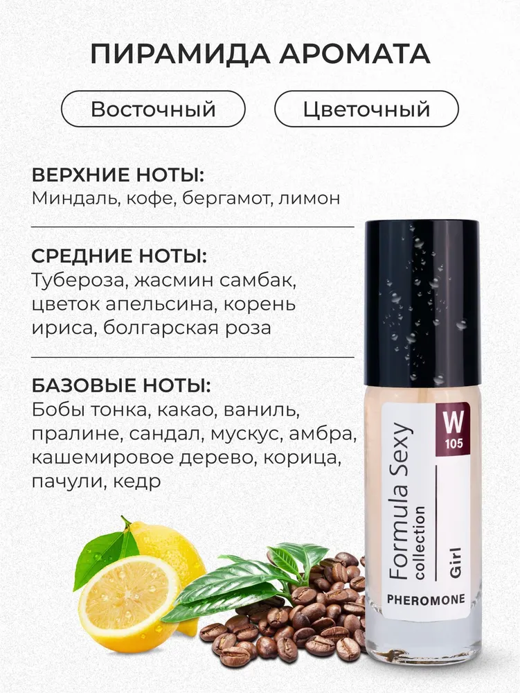 Туалетная вода с феромонами Formula Sexy Collection Girl W105, 8 мл — миндаль, кофе, жасмин, бобы тонка. Стойкость и соблазн в Алматы